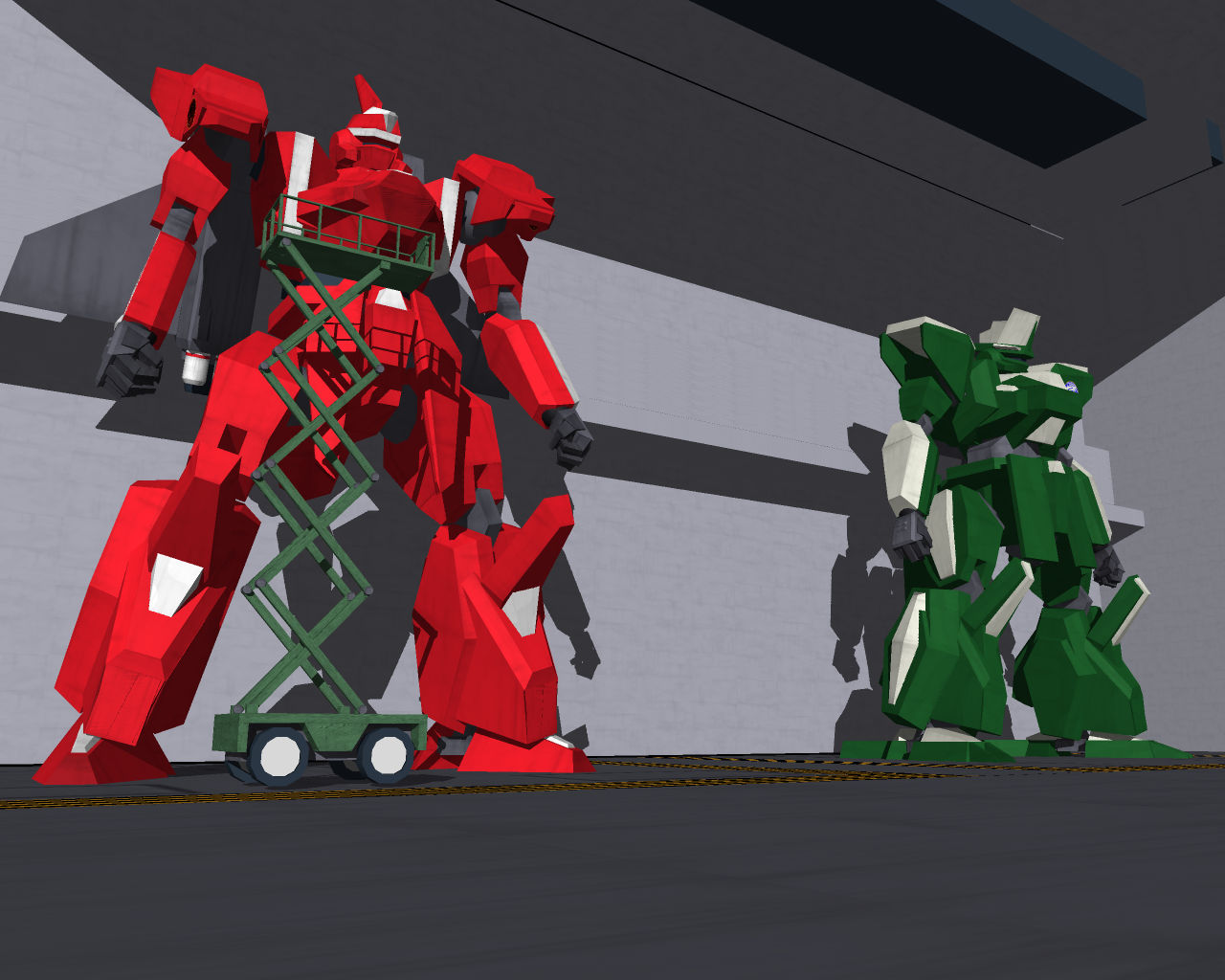 よーっし、この格納庫が最後だな! 結局、4つ並んでた格納庫を端から当たってみた結果、第一からスタートしちまって丁寧に一個ずつ第二・第三ときて、最後の四つ目がここだ。 「すんませーん!」 心身共にいろんな意味で疲れた俺は、右手にくしゃくしゃになったメモ用紙を握り締め、半ばキレ気味に声を張り上げて呼びか けた。 「へーい?…なんだボウズ、社会科見学か?ここは機密エリアだから入っちゃダメだぞー。」 整備用の・・・なんつーんだっけ?でっけぇ上向きのマジックハンドみてぇな奴の先に、足場がある奴。・・・まぁいいや、 『マジック足場』で。その上に乗ってなんか整備してた二足歩行する牛のおっさん(つまり、牛獣人だな)が顔だけ振り向いて雑に 答えた。 ボウズってなんだよ。俺は中学生だぞ!・・・あ、オッサンから見りゃ、15才未満なんてそりゃ"ボウズ"か。 「いや、社会科見学で軍の機密エリア入れちゃマズいっしょ。俺は寺崎 利樹(リキ)。イチ兄ぃ・・・じゃねーや、寺崎 利一 (リイチ)の弟っす。兄から、機体を受け取るよう言われて来たんすけど。」 どうもこういう、目上の大人と話すってのは経験が無いからわかんねぇや。 「あー、はいはい。弟クンね。りーちゃんから話は聞いてるよ。俺は、アルマフト軍の整備のおっちゃんで、那刳(ナグル)ってん だ。丁度、君の機体を調整してたとこさ。」 ![]() 俺の機体であろう、飛行ユニットを背負った背後の赤い機体を指差して、おっさんは笑う。 「・・・しっかし、全身真っ赤っかとはボウズ、ド派手なオーダーするねぇ。」 イチ兄ぃにも言われた事を、今度はおっちゃん・・・ナグルさんだっけ?にも指摘される。あー、やっぱ変なのか。 最初に色の希望を聞いたイチ兄ぃなんて、兄貴と二人で修羅みたいな顔して俺に機体色と迷彩、視認性の重要さを説明したっ け。W兄ちゃん'sのお説教は脳に効くもんだと、あの時初めて知った。 「いや、やっぱ男なら"戦隊・レッド"に憧れるっしょ!そも、兄ちゃん達の機体はド派手に真っ白じゃないっすかー。」 俺が反論すると、ナグルさんはクックックッと押し殺した笑いで答えた。あ、やっぱおっちゃんもそう思うんだ。あのド派手に 白い機体を見てたら、赤くらい許される気になっちゃうんだよ!そうだ、俺は悪くねぇっ! 「そうだよなぁ。ボウズみたいなの、嫌いじゃないぜ。・・・おっと、ESDの調整器が必要だな。ボウズ、持ってくるから ちょーっとそこで待っててな。」 『マジック足場』を操作して、足場部分を降ろすと、ナグルさんはその重厚そうな見た目に反してピョンと軽やかに飛び降り、 スタスタと格納庫の事務所に消えていってしまった。 「・・・へーい。」 突然置き去りにされた俺は、どうにか返事だけして、恐る恐る格納庫の中に進む。 そこに佇む赤い巨人、つまり俺のF2を見上げると、ふとその隣が気になった。 緑色の巨人・・・いやF2。確か、妹の利沙(リサ)が緑色希望だったっけ。てことは、俺のF2の隣にいるくらいだし、これ はリサのか。 んー。中学生で自分専用のF2を持ってるって、まるでSFロボアニメの主人公みたいだよな!・・・まぁ、つってもこれにマ トモに乗るようになるのは、高校卒業後って一応決められてるんだけどさ。今はまだ、データ取りの為に時々乗る事になるだけみ たいだし。 でもでも、中学生で専用機だろ? 時々"実験"で乗るんだろ? やっぱ主人公みたいで・・・ 「えへへへぇ・・・。のへぇあ!?」 悦に浸っていた俺を、背後から襲う突然の衝撃。首根っこを捕まれたぞ!? なんだ?なんなんだ!? 慌てて、足をバタバタ振ってみるが、何の役にも立たない。ですよねー。ってか俺、浮いてる!?空中浮遊〜!なんて馬鹿言っ てる場合じゃねぇぞこれ! 「ちょ!? な、なんすか!?なんなんすか!?襟掴んでるの誰っすか!?ってか、降ろせよ!」 「なーんでこんなトコに、ガキがウロついてやがんだぁ?」 俺の抗議に対して、後ろから投げつけられた声は、低くて野太い、猛獣の唸り声みたいな凄みのあるものだった。思わず怯んで しまう。 「い、いや、俺は・・・」 な、なんとか説明しねぇと、これは・・・殺される!? 恐怖で震える喉を奮い立たせて、なんとか言葉を紡ぐ。 「迷子かぁ?迷子は迷子センターに・・・って、基地の迷子センターって何処だよ。」 ・・・まいごぉっ?今この人、俺を迷子って言ったか?おのれ言うてはならん事を・・・!俺が何の為に苦労して、格納庫を一 個一個虱潰したか。てか今考えれば、第一格納庫があったんだから、その反対側の4つ目の格納庫にすぐ行けば良かったんだよ な。俺ってアホだわー。 あ、なんかすげームカついてきた。折角だし、八つ当たりしよ。けってーい! 俺の服の襟を掴んでる、でっかい手の形を頭の中でイメージする。その手を弾き飛ばすように、内側に弱い斥力場の種を展開す る。集中して、種が破裂する魔法の呪文を唱えよう。 リパルサー・ポイント!(斥力結点!) パチン! 「ってぇっ!」 強力な静